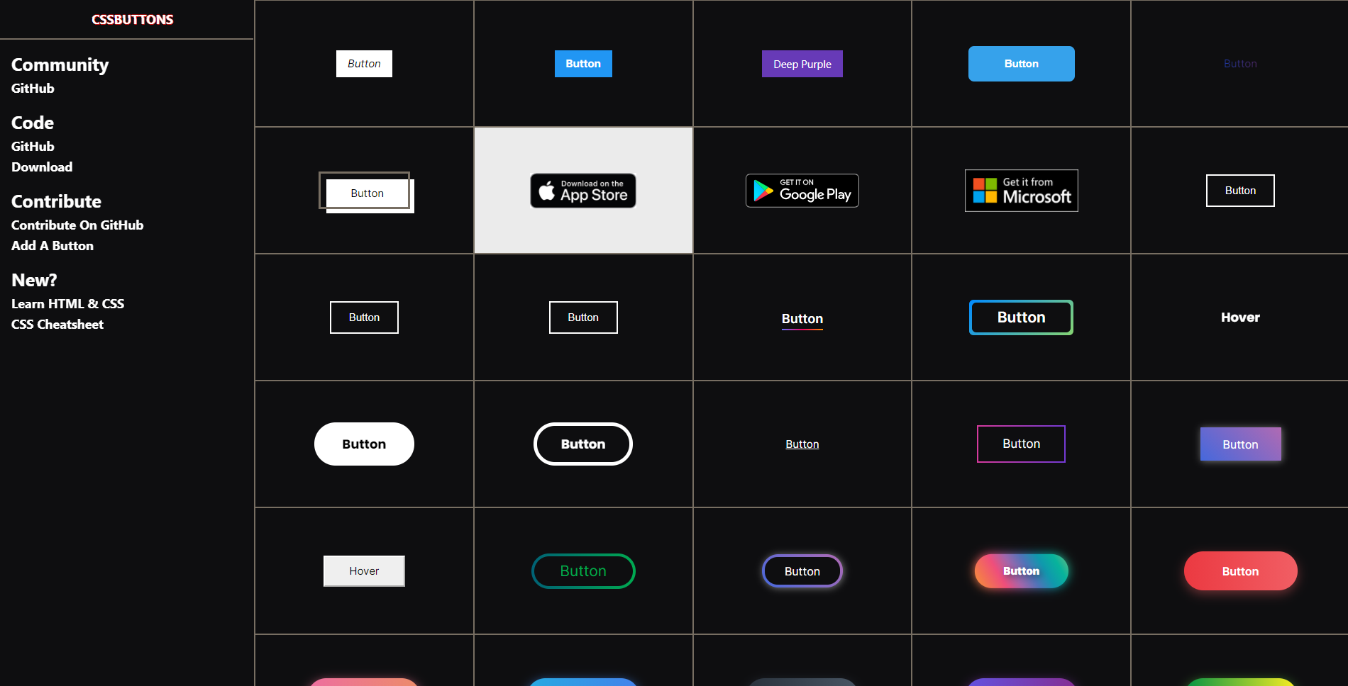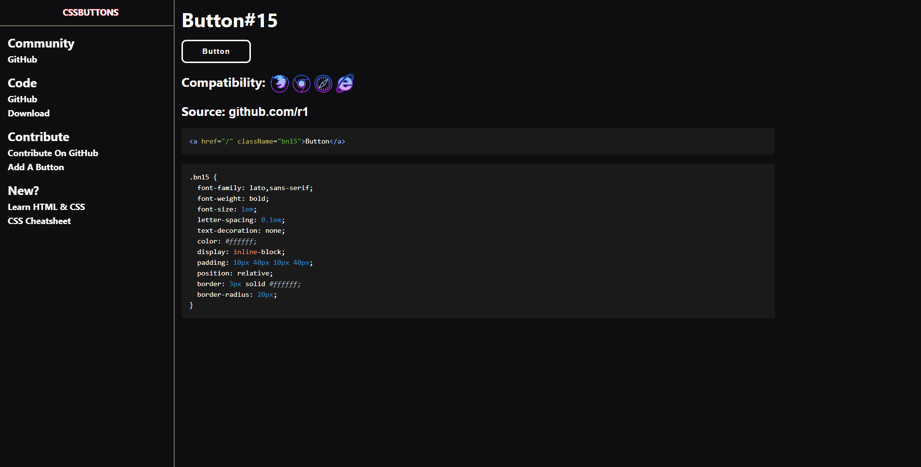cssbuttons is an MIT-licensed open source project full of pure CSS & HTML buttons for developers built-in React hosted on â–²Vercel.